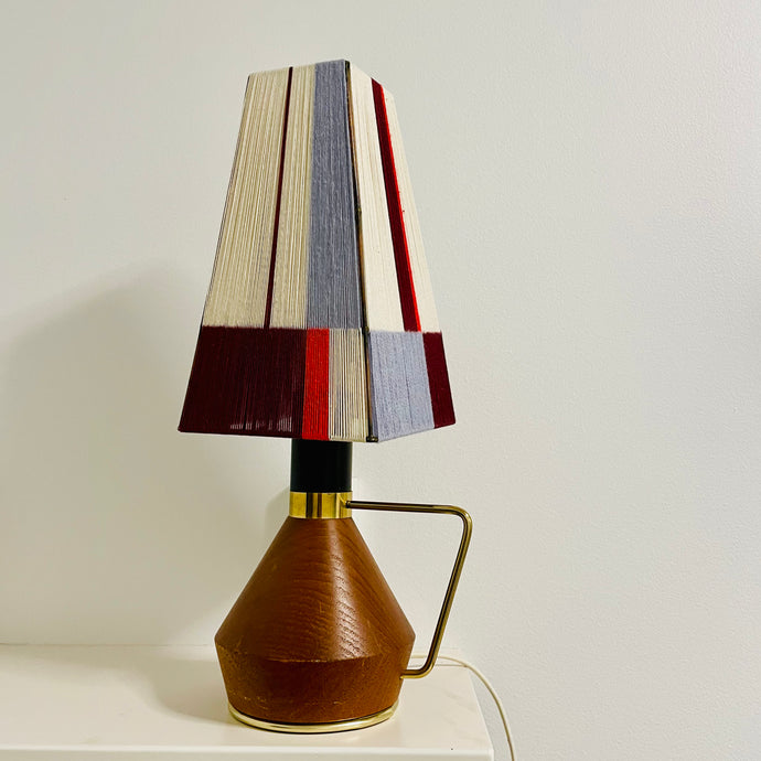 Efniviðurinn er gamlir lampaskermar sem fengnir úr ýmsum áttum og allskonar þráðum sem ég hef sankað að mér síðustu ár. Engir tveir skermar eru eins.